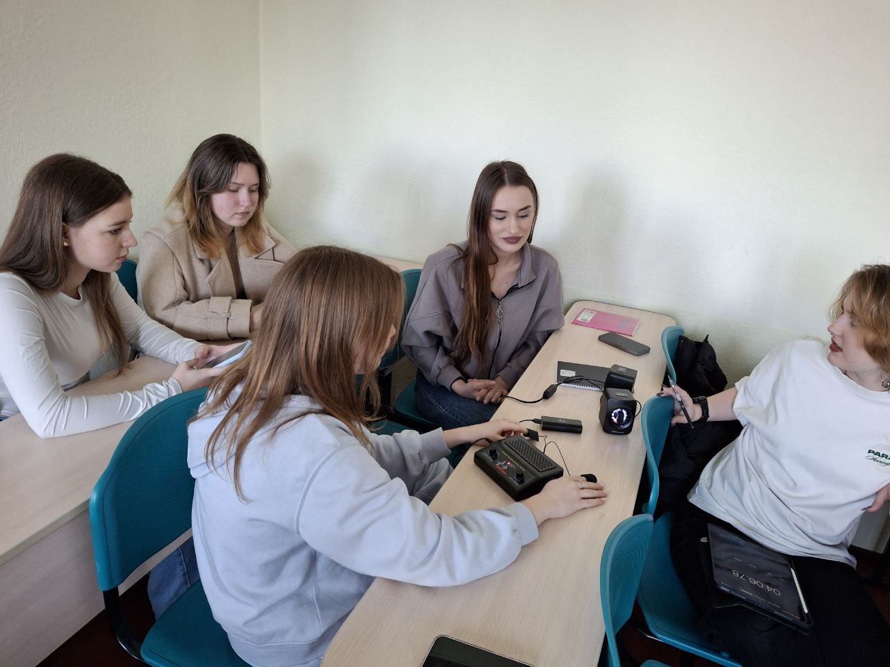 В рамках навчального процесу навколо 1 приладу зазвичай формувалася група з 4-5 студентів. Група складається зі студентів кожен з яких виконує свою навчальну функцію - це: