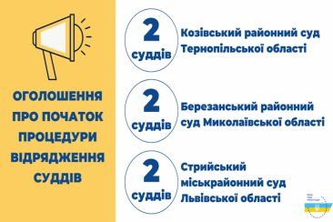 Вища рада правосуддя відповідно до рішень від 20 жовтня 2020 року №№ 2873/0/15-20, 2874/0/15-20, 2875/0/15-20 оголошує про початок процедури відрядження суддів до іншого суду того самого рівня і спеціалізації для здійснення правосуддя, а саме до: